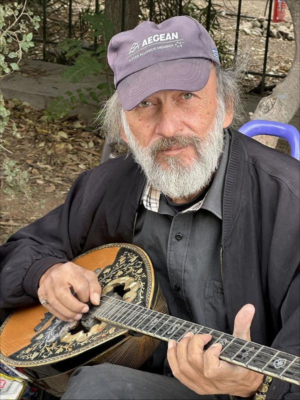 Greek man playing his balalaika
